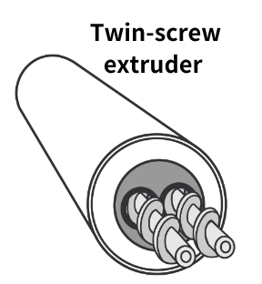 On this page, we will talk about the structure and characteristics of twin-screw extruder.