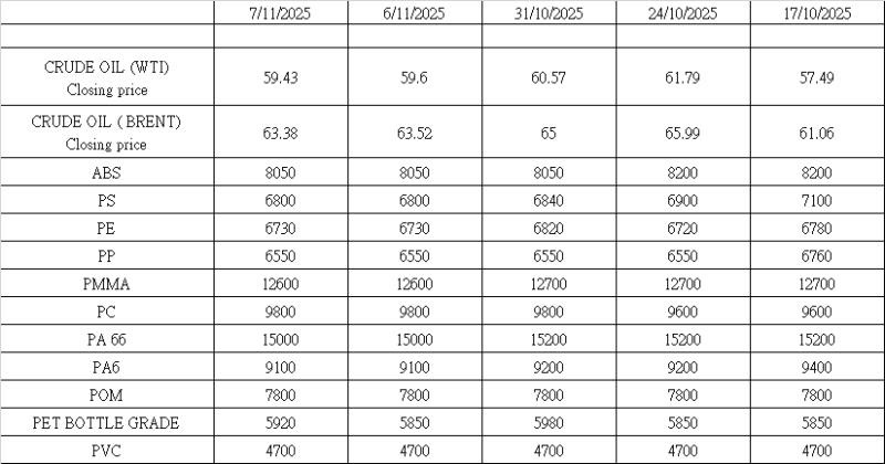 原油価格やモノマー価格の変動によって短期的な反発が起きる可能性はあるものの、市場全体は供給過剰、需要の低迷、そして熾烈な世界的競争によって依然として低迷しています。ほとんどの樹脂は11月中旬にかけて狭いレンジ内で推移すると予想され、そのボラティリティは原油の動向と下流部門の在庫補充サイクルに密接に連動しています。