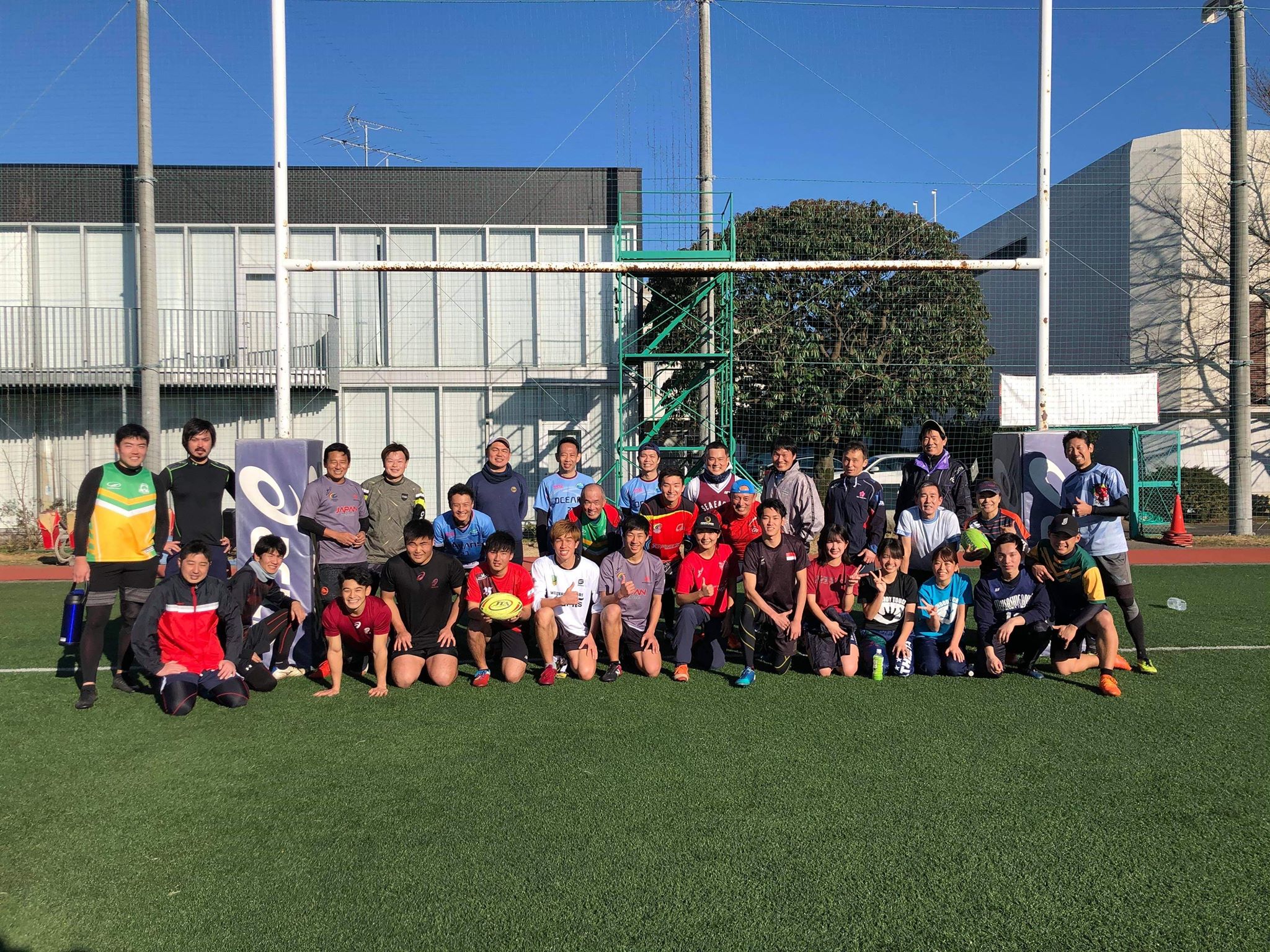 さて、この日は早稲田ラグビー部のグランドで、日体大のタッチラグビーチームと試合でした。