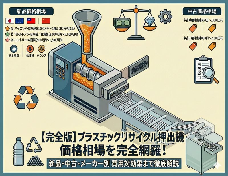 この記事では、長年リサイクル設備に携わってきたプロの視点から、押出機のリアルな価格相場と、価格差が生まれる理由、投資判断の基準を徹底的に解説します。